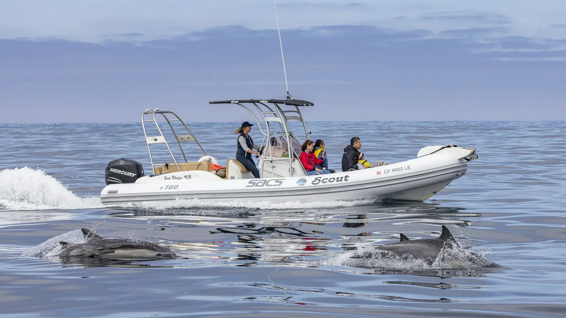 Orcas don’t have an offical season for us in San Diego, but 2023-2025 has seen the eastern tropical pod visit us consistently right around Christmas through March! If you’re willing to try your luck, come join us for a dolphin-watching adventure!